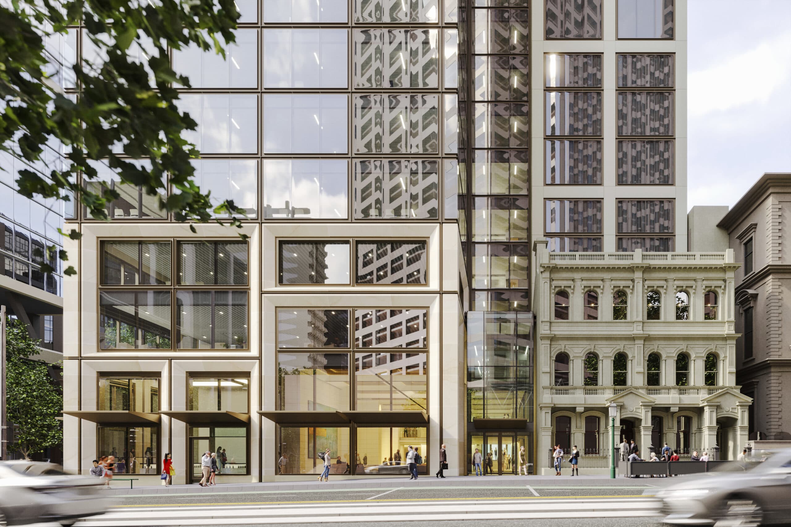 The architectural expression of the podium at pedestrian level continues the rhythm, materiality and scale established by its heritage-listed neighbours. The tower’s high-performance triple glazed curtain wall façade is designed to be both highly transparent and insulative. Multiple void opportunities allow for the creation of vertical villages, while terraces at various levels provide access to fresh air and outdoor space. Internally, connected floorplates and a flexible workplace environment support a high level of interaction amongst teams.
