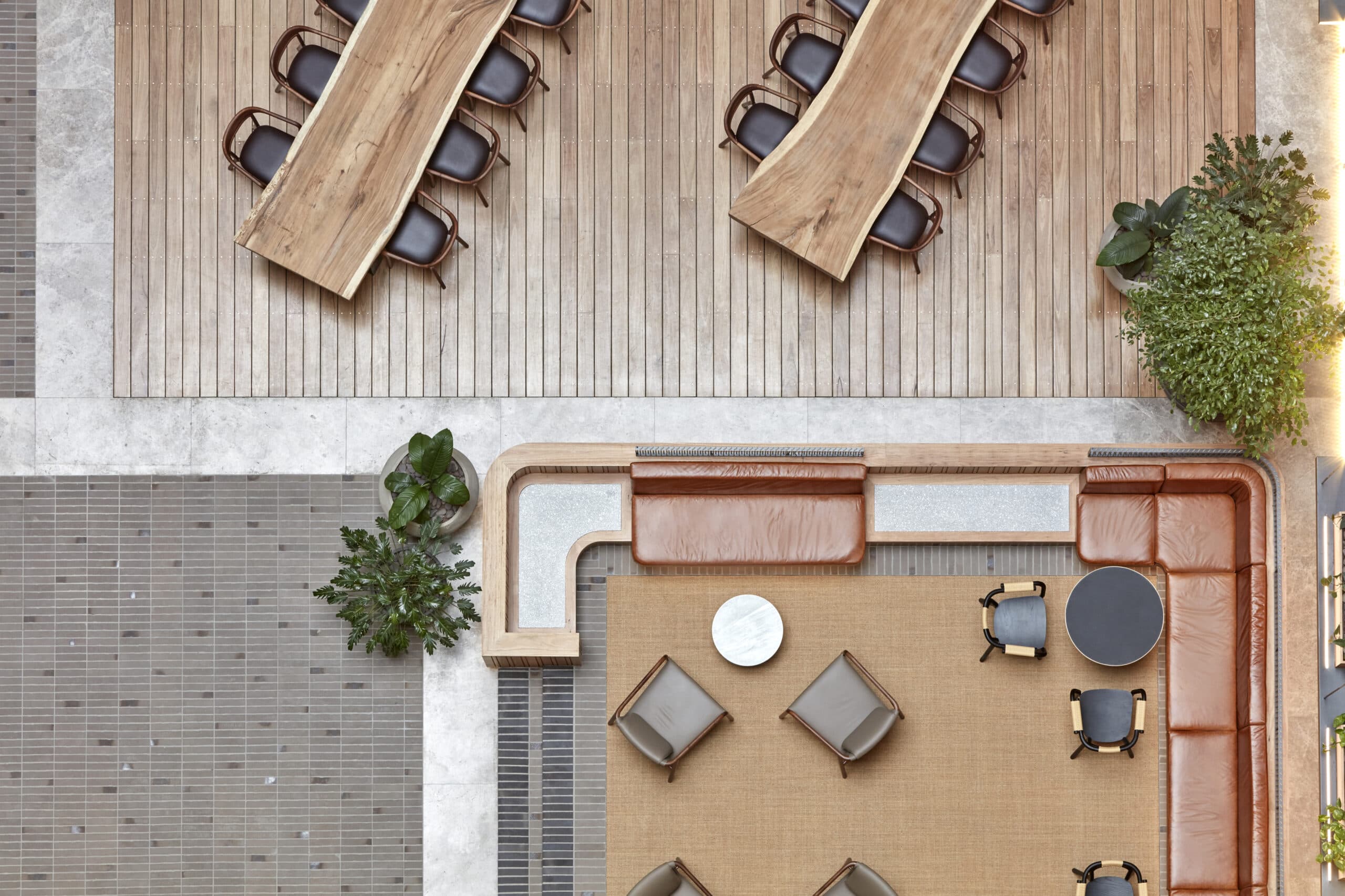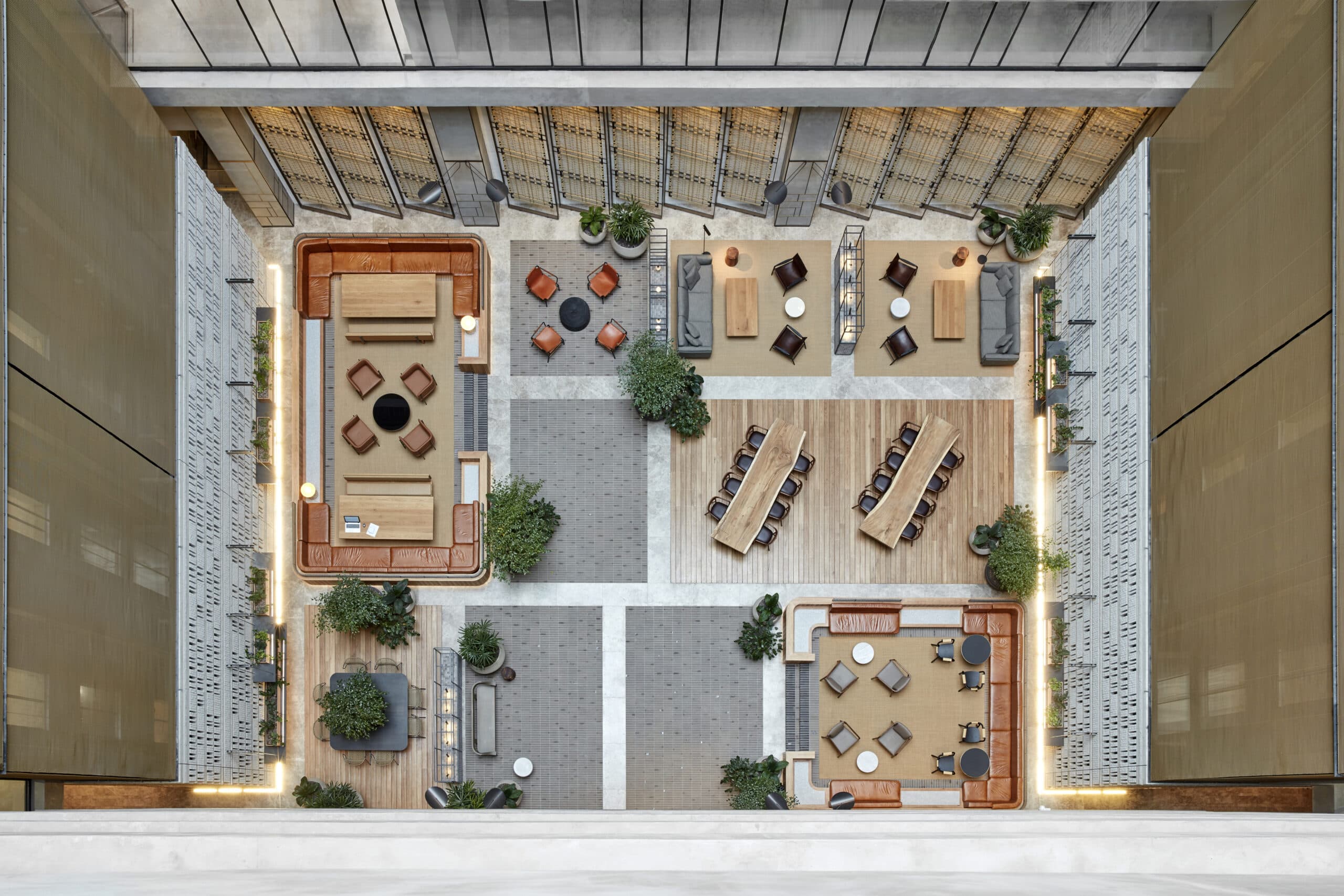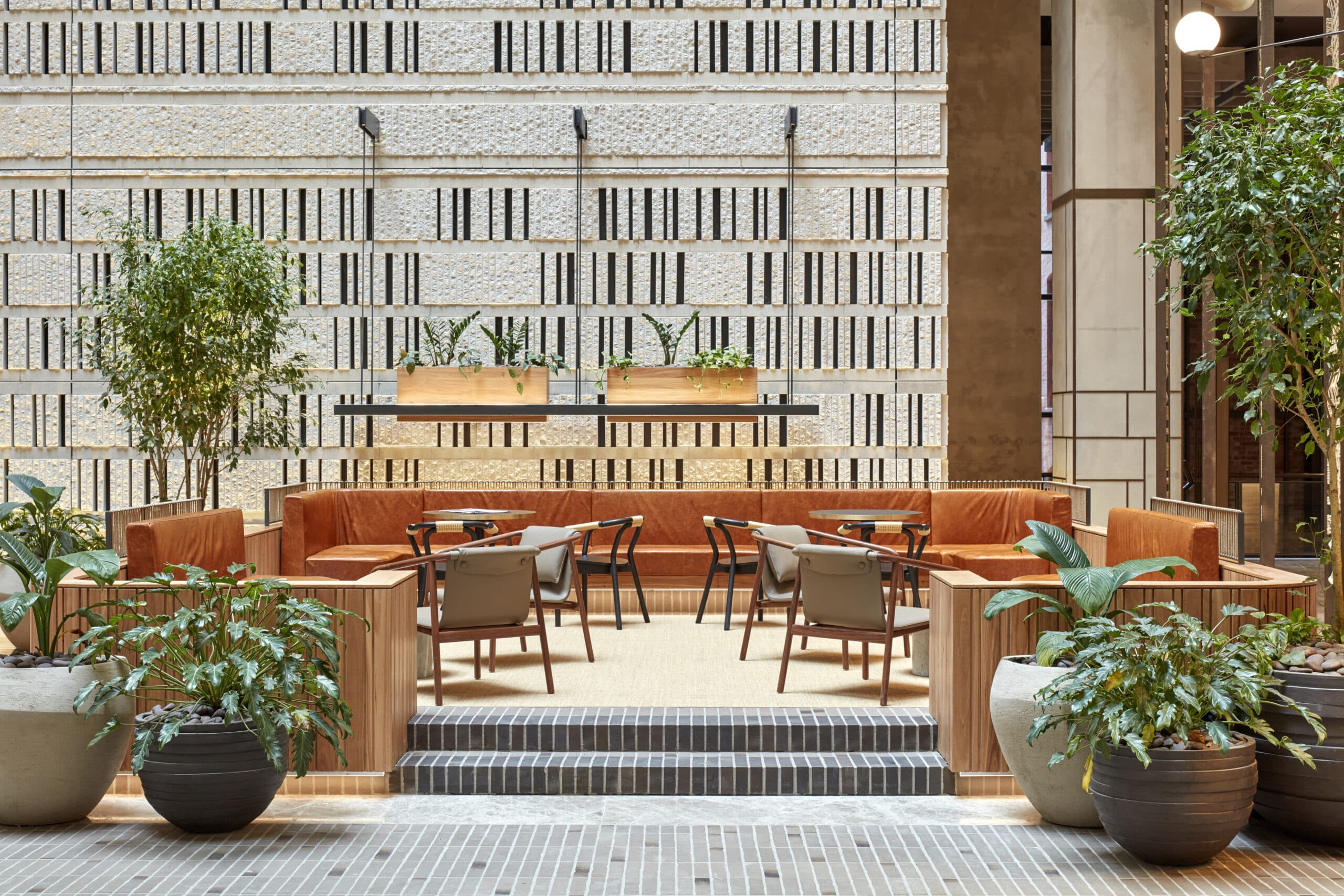 The heart of the building is the new signature atrium, which has been transformed into a casual tenant-focused working lounge. A range of different spaces allow people to gather and relax, while daylight, natural materials and greenery create a warm and inviting oasis-like space.