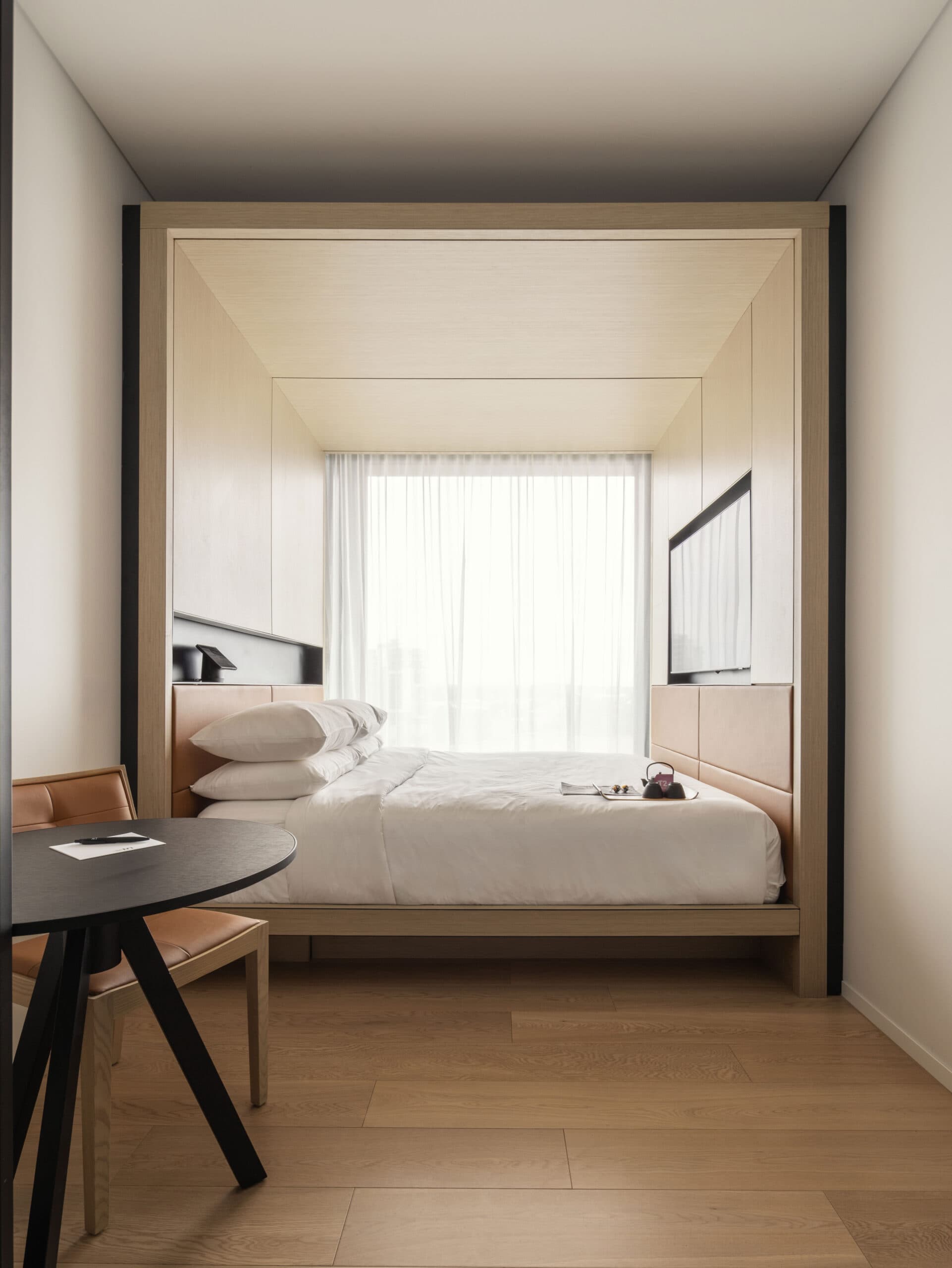 The Little National Hotel engages Cottage Creek and the adjacent park. Inside, 179 guest rooms occupy six levels, each featuring a wooden-framed super king bed within a full-height picture window. Amenity spaces include a lounge, bar and library, designed by Luchetti Krelle to provide an elegant, welcoming environment.