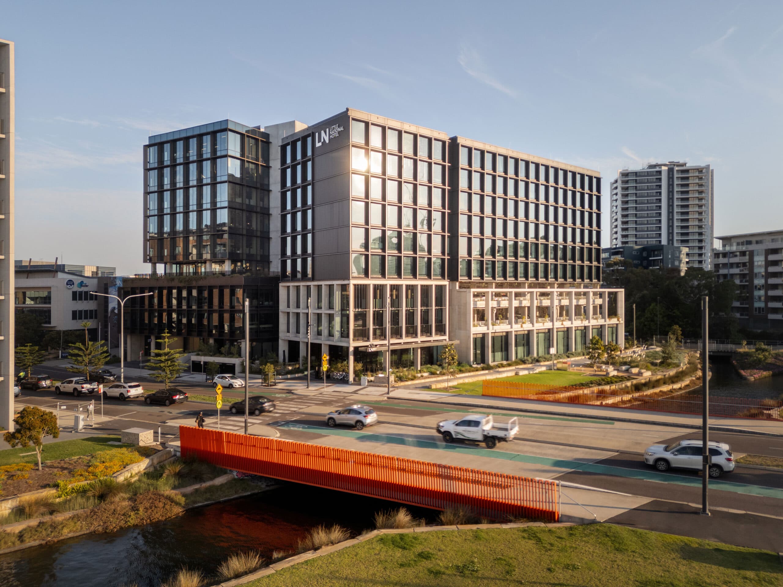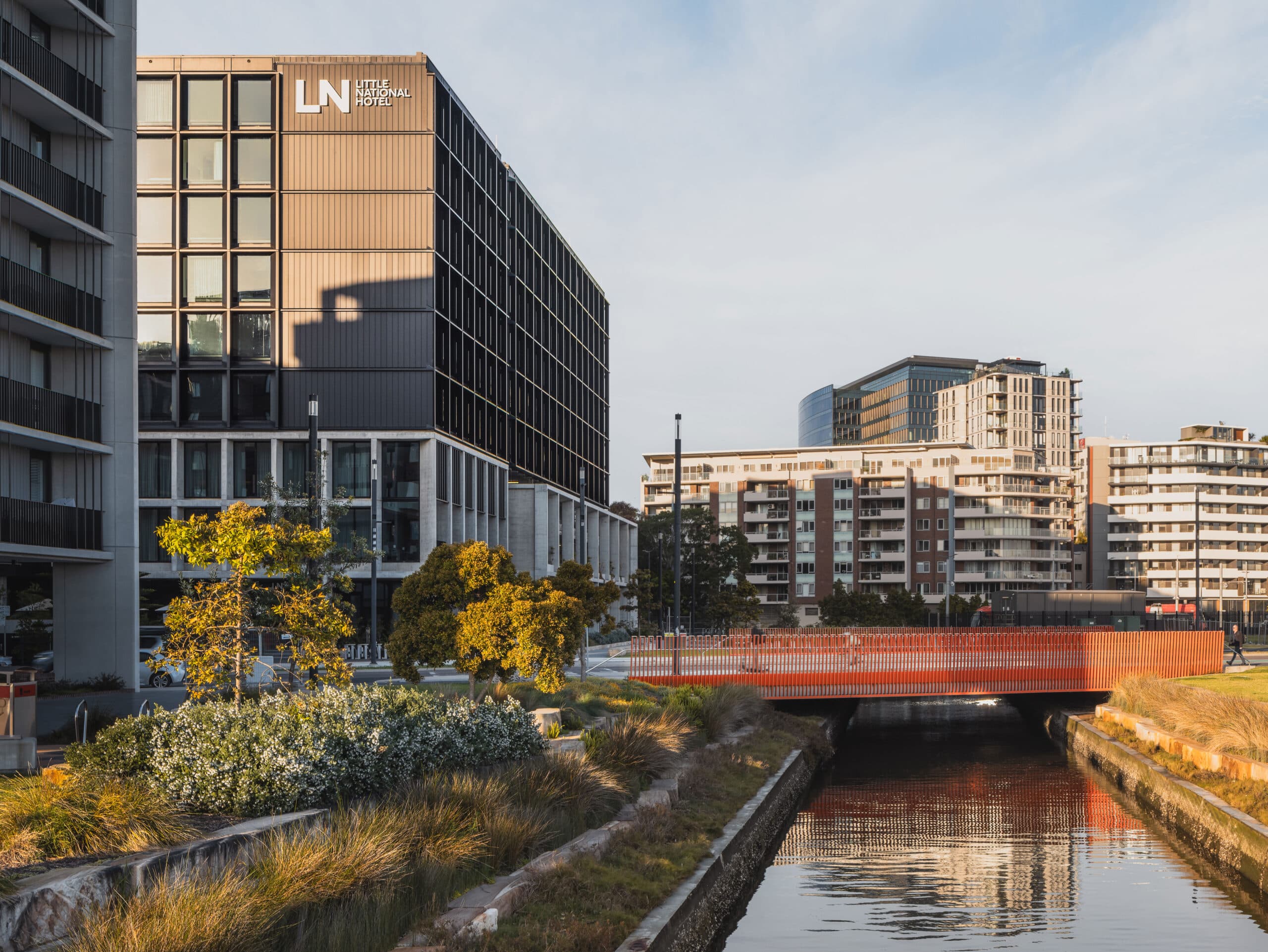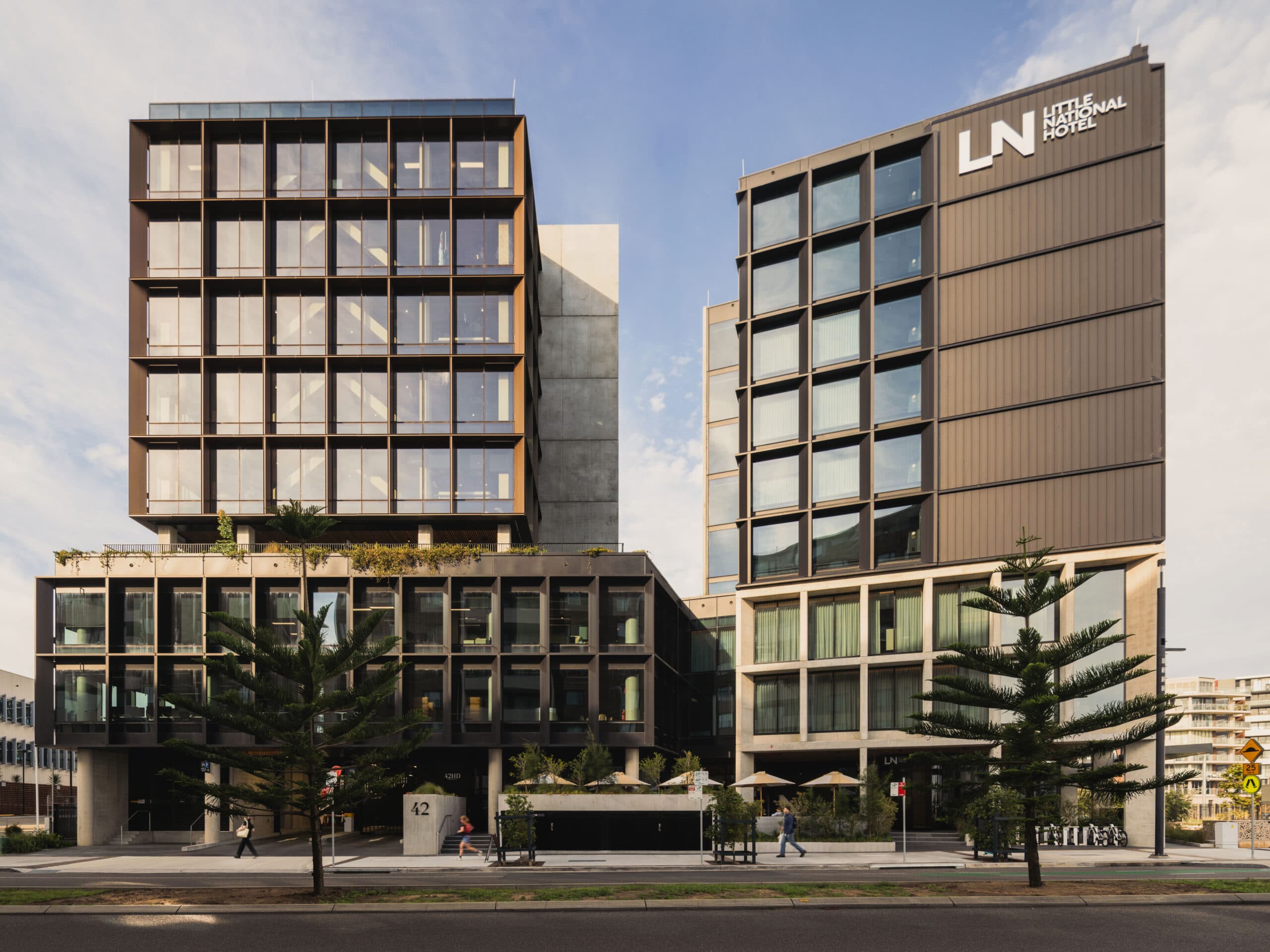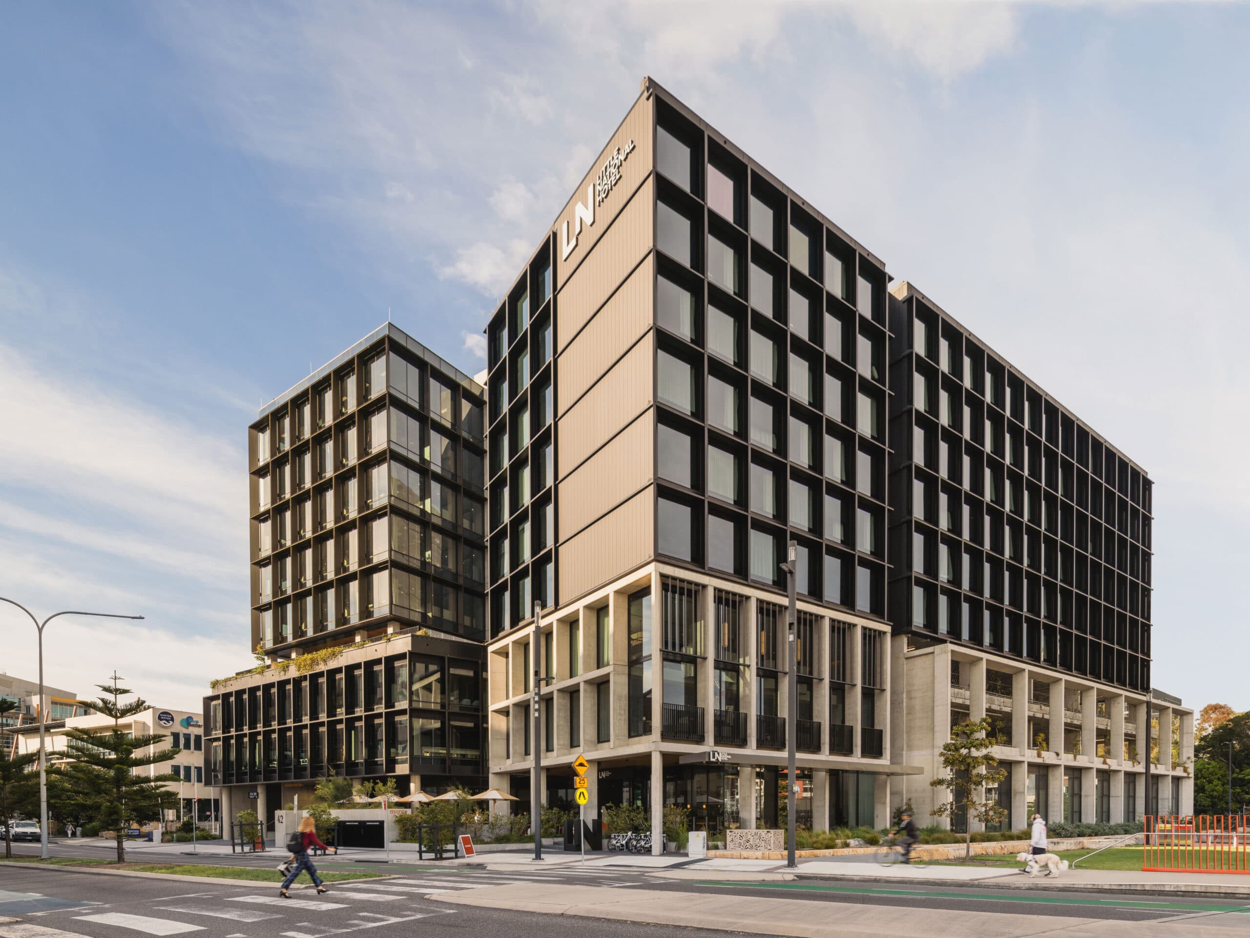 42 Honeysuckle Drive delivers a new benchmark for mixed-use development in Newcastle, combining a Little National Hotel and a commercial office building.